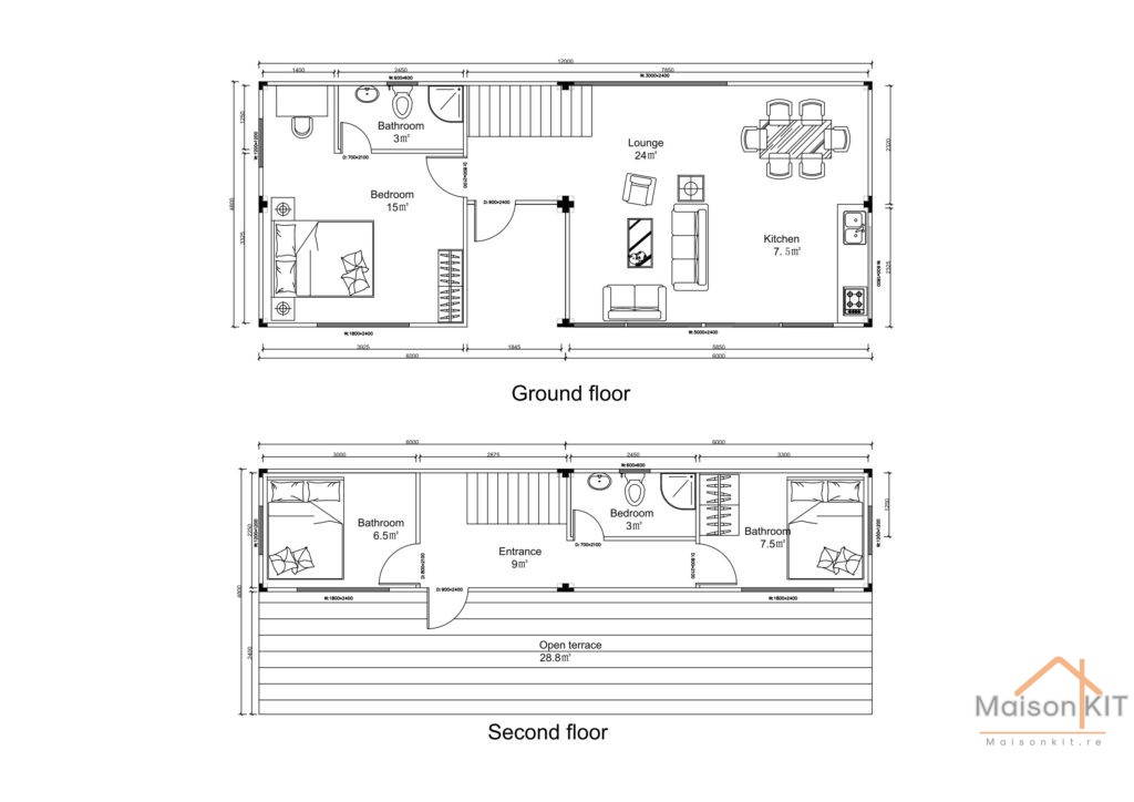 Longueur 12m Largeur 4m80 Hauteur 5m92